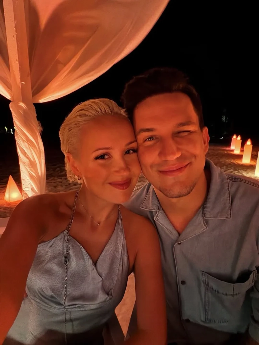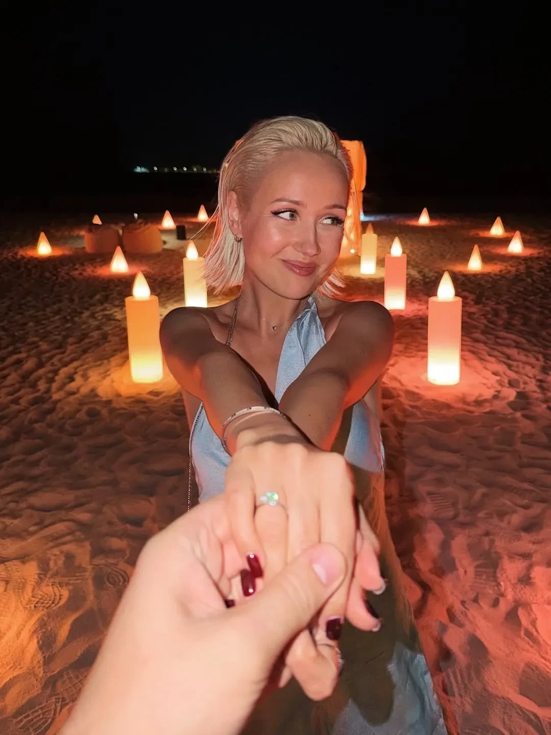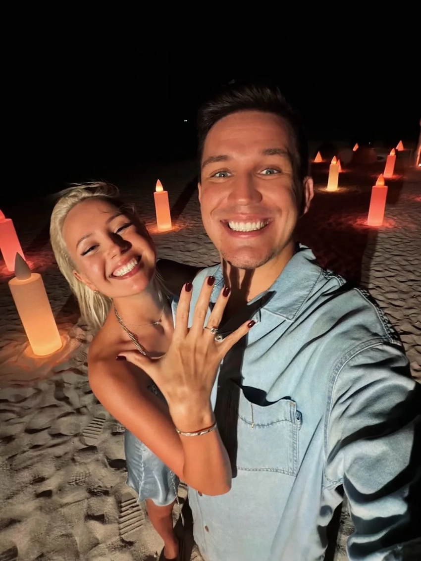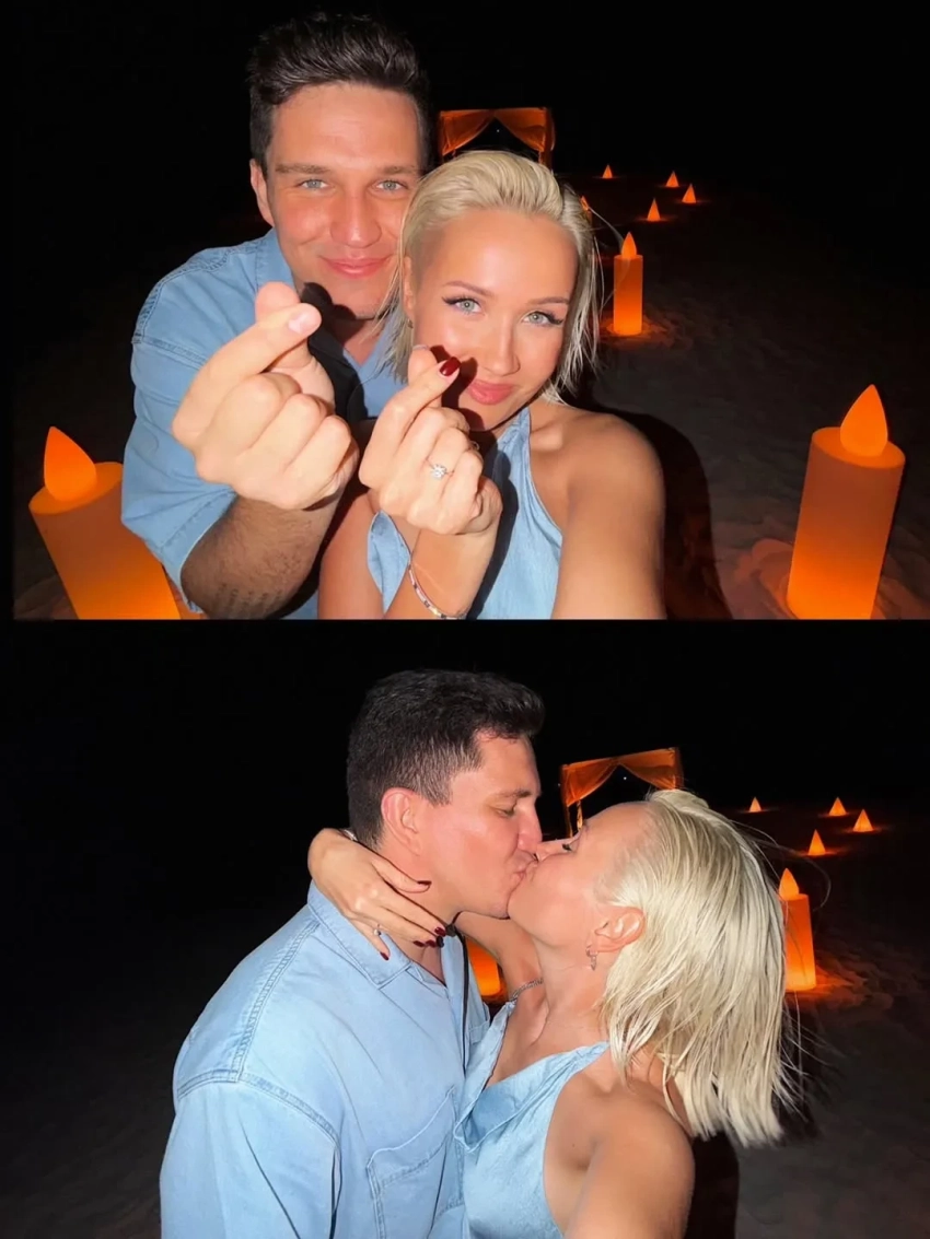 На снимках пара позирует вместе на песчаном пляже. "Мы не встречаемся. Мы женимся!" — подписала фото артистка.