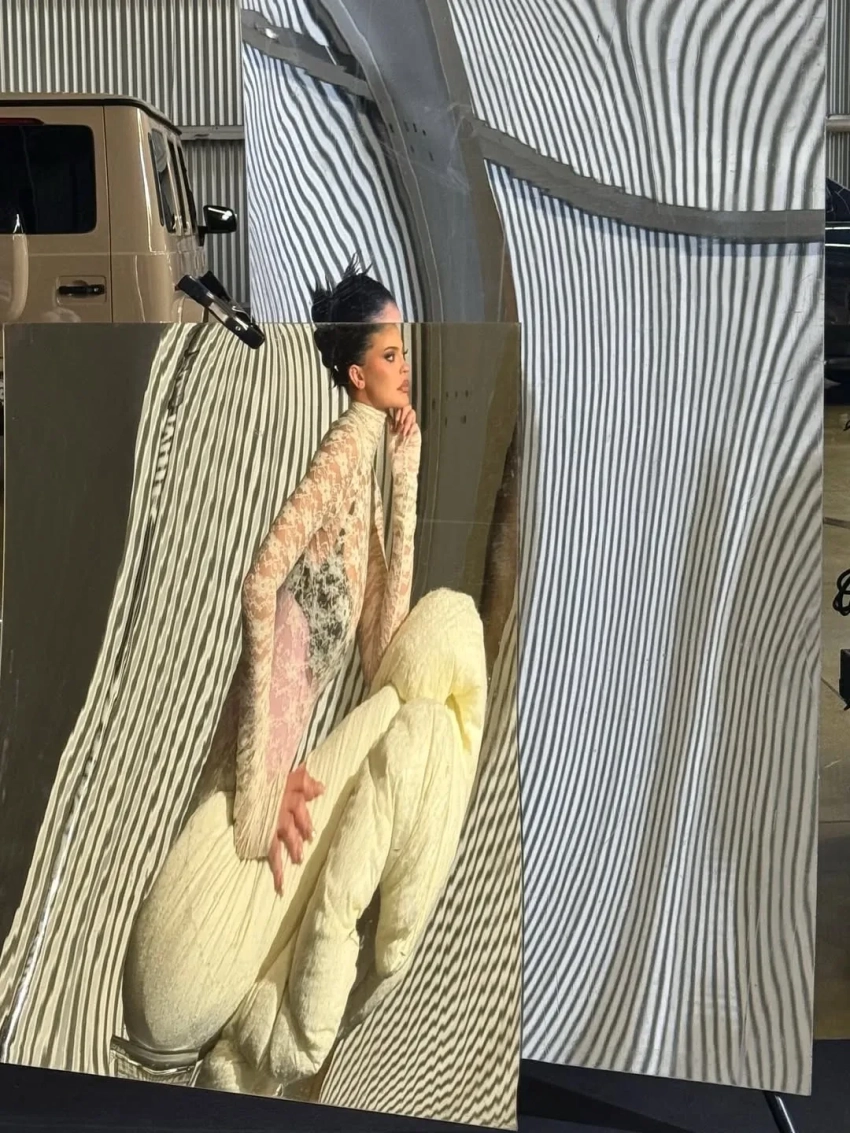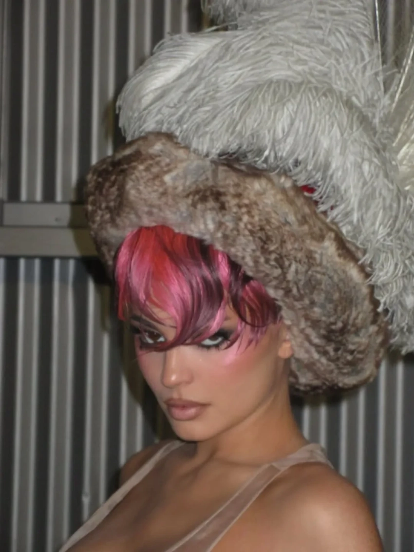 Для фотосессии Дженнер примерила образ с колготками и розовыми волосами, бра с мехом и другие дизайнерские вещи. Над фото и коллажами работала фэшн-фотограф Кат Ирлин, а Кайли также показала в соцсетях, как прошла съёмка.