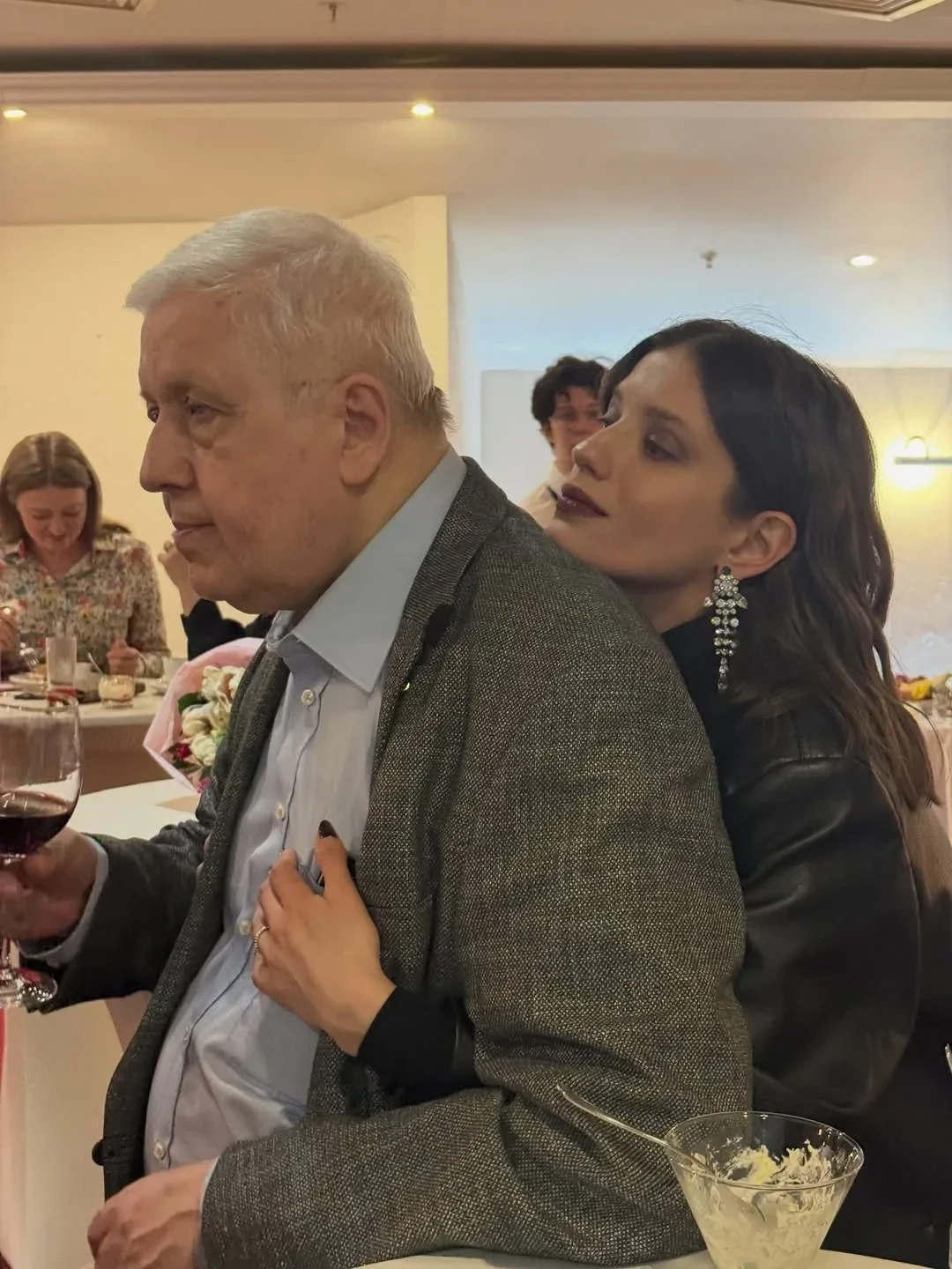 "Какой отец, такая дочь", — подписала фото актриса, на которых она обнимает музыканта и позирует с ним на мероприятии в компании певицы Мариам Мерабовой.