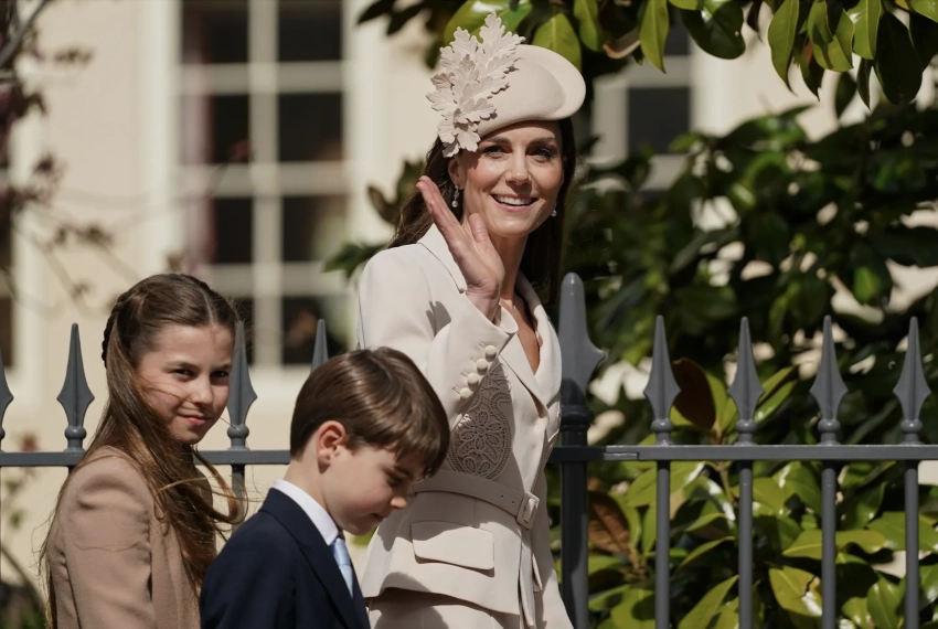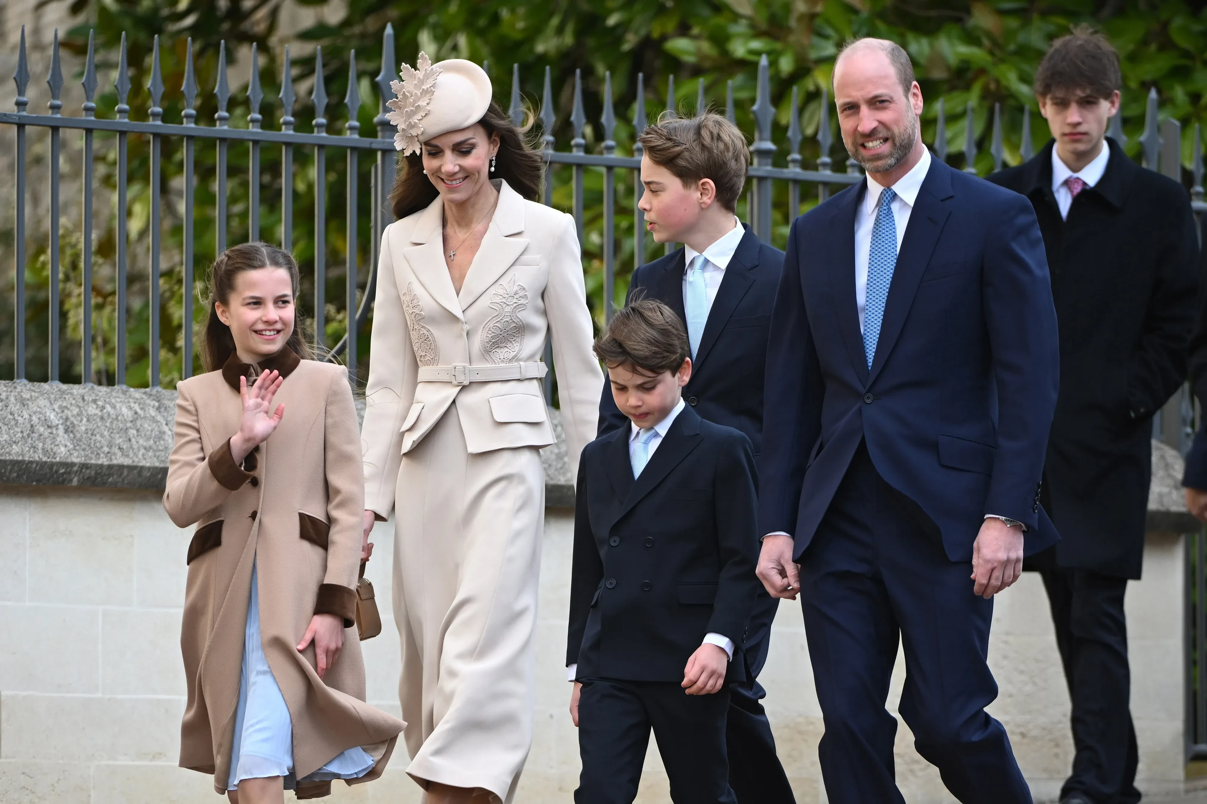 Кейт Миддлтон вместе с принцем Уильямом и тремя детьми — 12-летним принцем Джорджем, 11-летней принцессой Шарлоттой и семилетним принцем Луи — присоединились к королю Карлу III и королеве Камилле на пасхальной службе. Семья Уэльских направлялась в часовню Святого Георгия.