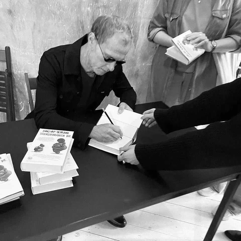 Примечательно, что в 2021 году общественность с трепетом обсуждала встречу в московском подвале "человека, похожего на Пелевина", с его поклонниками. Позже, впрочем, выяснилось, что это был загримированный Юра Борисов. Акция оказалась перформансом журнала Esquire, посвящённым теме фейковых новостей: актёр сыграл писателя для обложки номера и инсценированной автограф-сессии в рамках продвижения романа Transhumanism Inc.