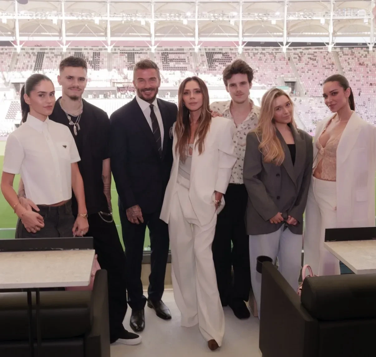 Виктория Бекхэм вместе с тремя детьми пришла поддержать мужа Дэвида Бекхэма на открытии нового стадиона его футбольного клуба в Майами. Семья вместе позировала для фото — без старшего сына Бруклина, который не общается с ними.