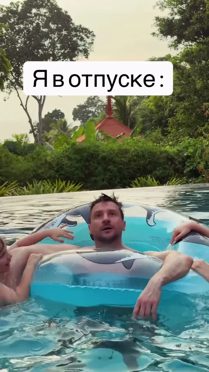 43-летний певец записал видео с тропических островов, где сейчас находится на отдыхе с детьми, в стиле мемов "ожидание/реальность". Ролик начинается с кадра, где артист в одиночестве принимает солнечные ванны на побережье. "Вот поеду в отпуск, полежу и отдохну в тишине", — гласит подпись под ним. Затем фото сменяется постановочным видео, в котором Лазарев уже изображает страдание, держась за надувной круг в бассейне, пока его дети делают вид, что "атакуют" его своими просьбами.