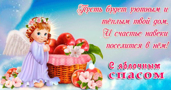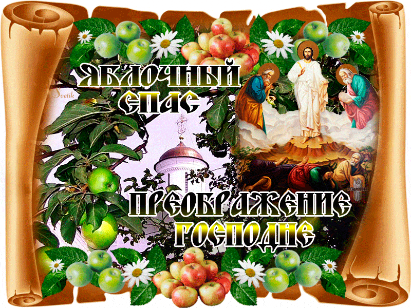 Если вы хотите отправить друзьям или родственникам картинки с Яблочным Спасом, это можно сделать с помощью поздравления с анимацией или в виде интересной гифки.