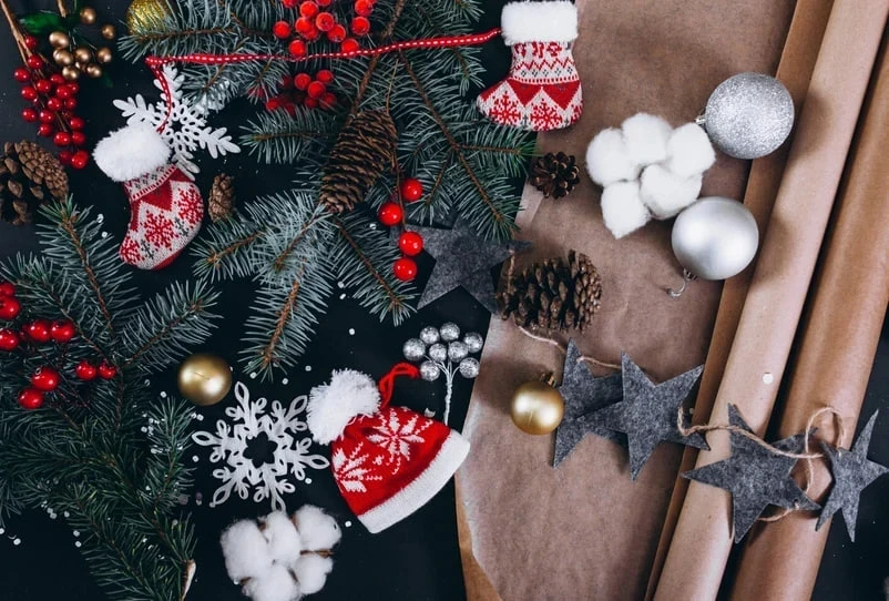 - В тренде вязаные игрушки, текстильные звёзды и элементы из джута, создающие ощущение уюта и домашнего тепла.