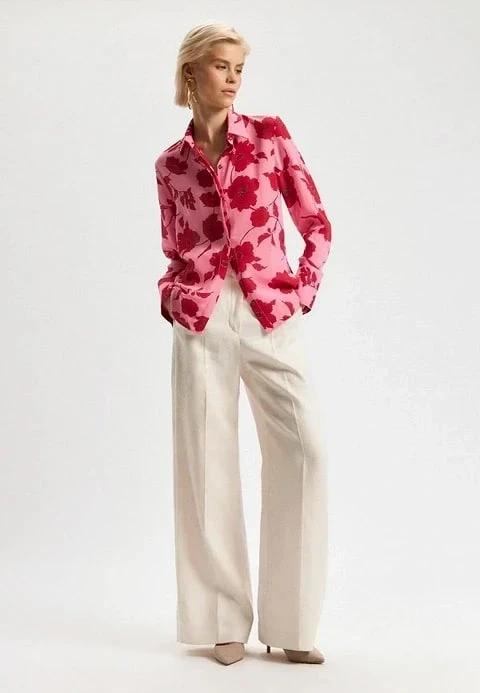 • Блузка с крупными цветами прекрасно смотрится с джинсами, брюками или юбкой А-силуэта.