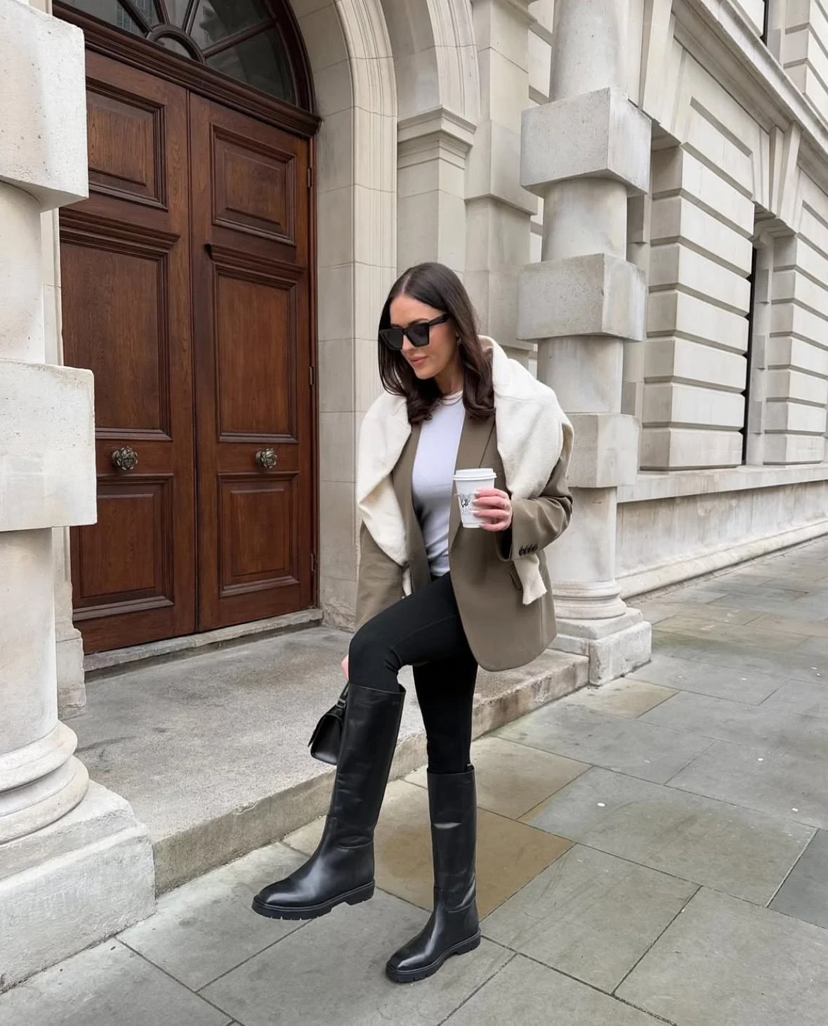 Сапоги до колена в сочетании с широкими брюками — один из самых модных дуэтов 2026 года. Идеальный вариант — когда штанина слегка приподнимается, открывая часть голени и создавая динамику.