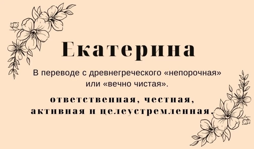 Обладательница имени Екатерина часто отличается живым, холерическим темпераментом, что делает её эмоционально восприимчивой и порой легко раздражаемой. Она хорошо осознает свои интеллектуальные возможности и стремится к тому, чтобы окружающий мир соответствовал её ожиданиям.