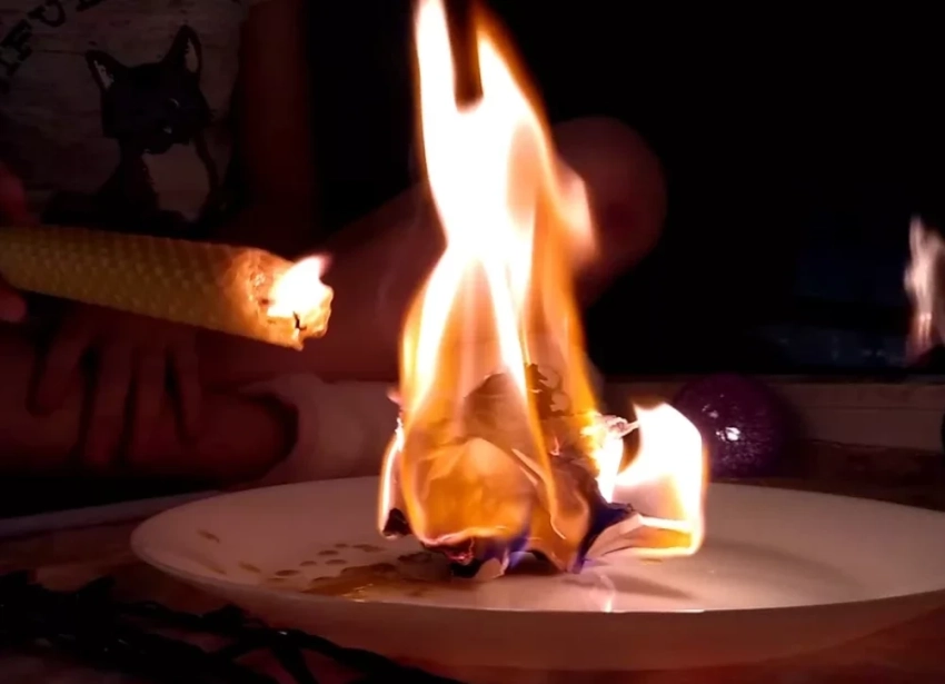 Когда огонь дойдет до буквы «Я», резко потушите бумагу.