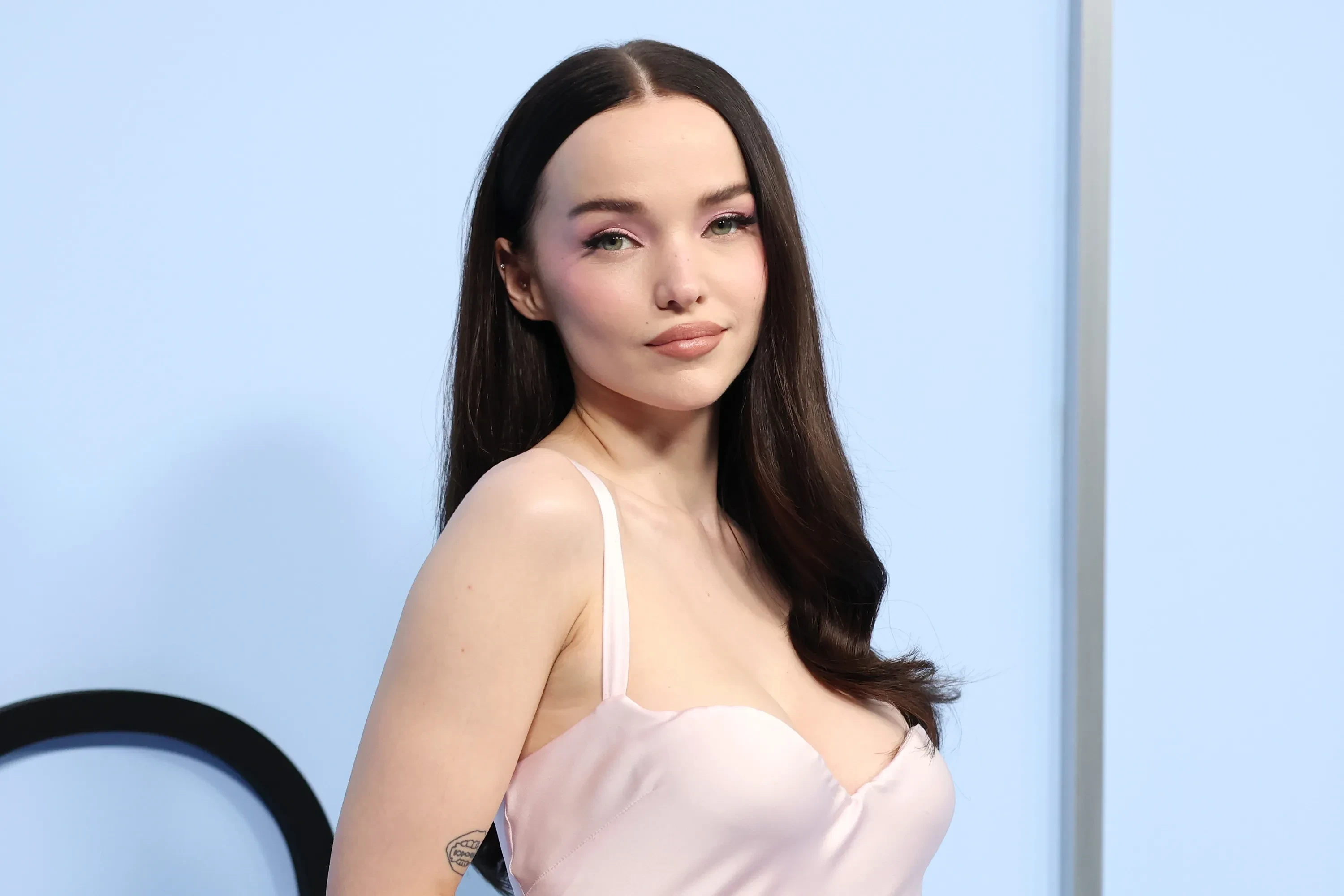 30-летняя Дав появилась на красной дорожке в похожем на свадебный наряд атласном платье в пол нежно-розового оттенка.